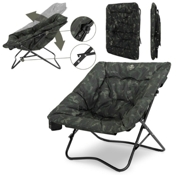 Seria foteli BANX udowadnia, że wyjątkowy design, wysoka jakość i maksymalna wygoda nie muszą iść w parze z wysoką ceną – efektem jest linia foteli o przystępnej cenie, która w pełni zadowala nawet najbardziej wymagających wędkarzy. Model THIXER ma tradycyjny, ale bardzo wygodny kwadratowy kształt, zapewnia wygodę i podparcie dla całego ciała nawet podczas długich sesji. Podstawę stanowi solidna, metalowa rama w kształcie litery X, którą można złożyć lub rozłożyć dosłownie w kilka sekund. Taki typ konstrukcji zapewnia doskonałą stabilność, a po złożeniu zachowuje kompaktowe wymiary. Dodatkowo cała konstrukcja jest regulowana – za pomocą plastikowych mechanizmów blokujących fotel można ustawić w jednej z trzech pozycji. Aby zapobiec przypadkowemu złożeniu podczas siedzenia, fotel wyposażono w bezpieczny system blokady. Kluczową zaletą modelu THIXER jest wyjątkowo miękkie siedzisko, grubo wyściełane zarówno w środka, jak i na całym obwodzie. Gdy tylko usiądziesz, masz wrażenie, że materac dosłownie cię otula – przez co trudno się z niego podnieść, nawet gdy bierze ryba. Powierzchnia materaca wykonana jest z wytrzymałej tkaniny 600D z oryginalnym kamuflażem BANX, co gwarantuje trwałość i niezawodność nawet przy intensywnym użytkowaniu. Model THIXER posiada boczną kieszeń idealną na napój, telefon lub inne drobiazgi. Dla wygody podczas przenoszenia, z boku umieszczono praktyczny uchwyt transportowy.