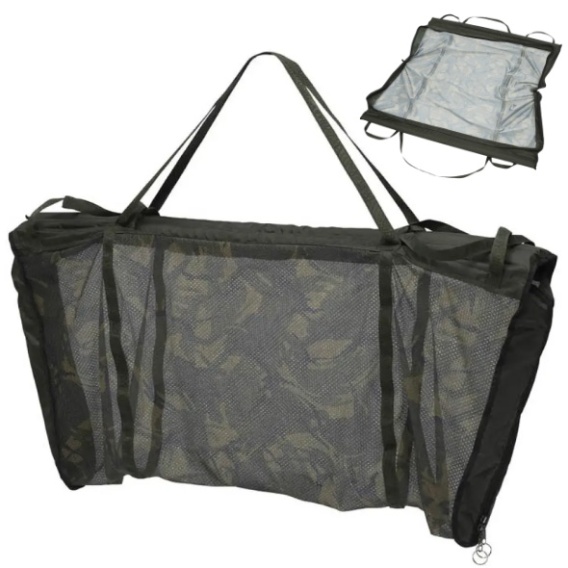 Worek do ważenia oraz przetrzymywania ryb w kolorystyce kamuflażowej. To niezbędne wyposażenie by bezpiecznie przetrzymać rybę w czasie szykowania wagi i aparatu do sesji zdjęciowej. Posiada 4 uchwyty do przenoszenia i dwa ramiona do zawieszenia na wadze. Miękka siatka w kamuflażu zapewnia wymianę wody w worku, a mocne zamki z pierścieniami zabezpieczają przed ucieczką ryby.