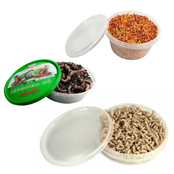 Zestaw najpopularniejszych i najbardziej potrzebnych robaków podczas spokojnego weekendowego wędkowania nad większością wód w Polsce. Znajdziecie tutaj klasycznego białego robaka , pinkę w mixie kolorów oraz dendrobenę w rozmiarze 3 (średnim)